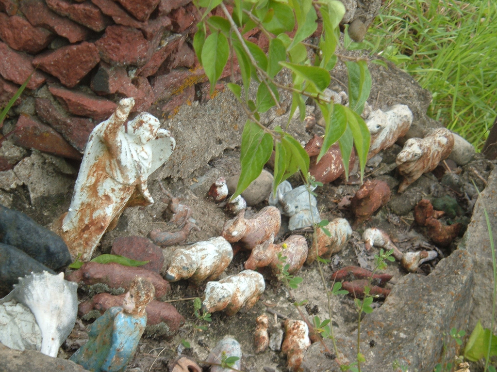The fish pond turned out so well that Hartman decided to add a little more for decoration. He salvaged large rocks from construction sites, hammered them down and added them to the walls and rim of the little pond, using concrete as adhesive. Broken mirrors and pottery shards soon found a new role as decor in Hartman’s growing project.